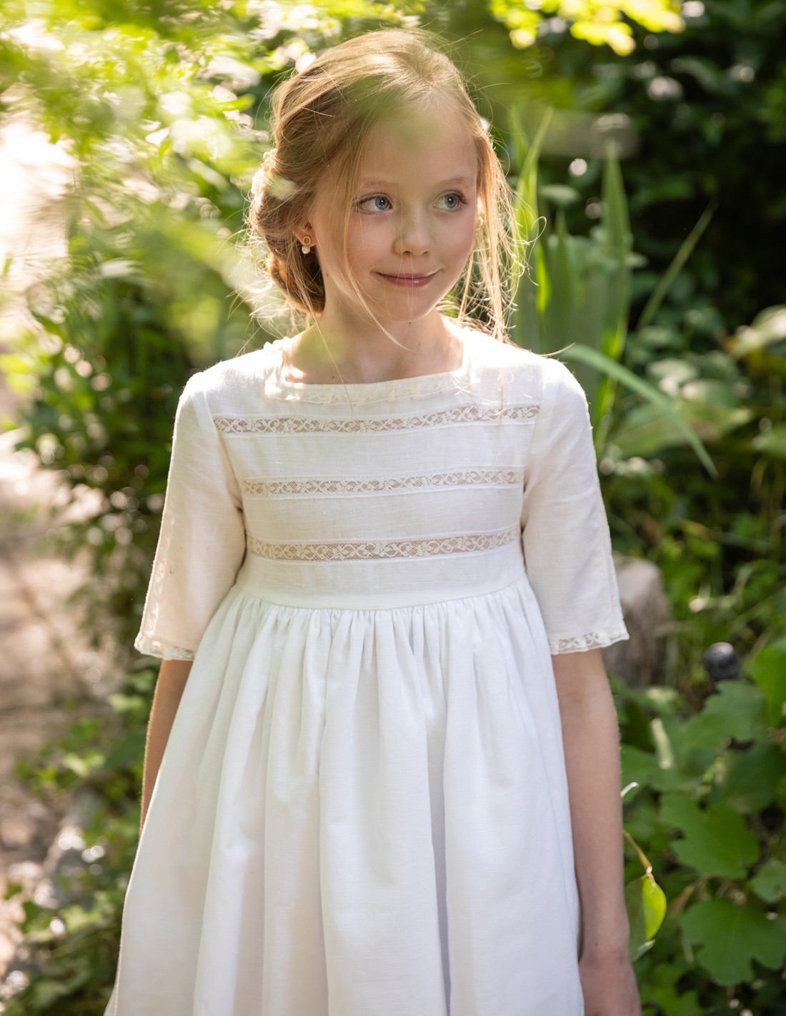 Vestido de Primera Comunión Verona, en lino blanco natural.