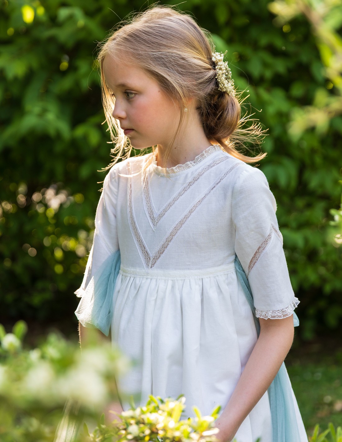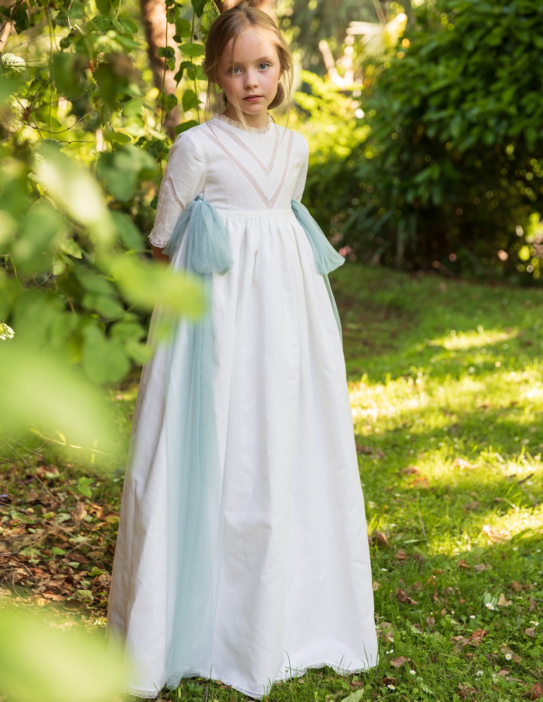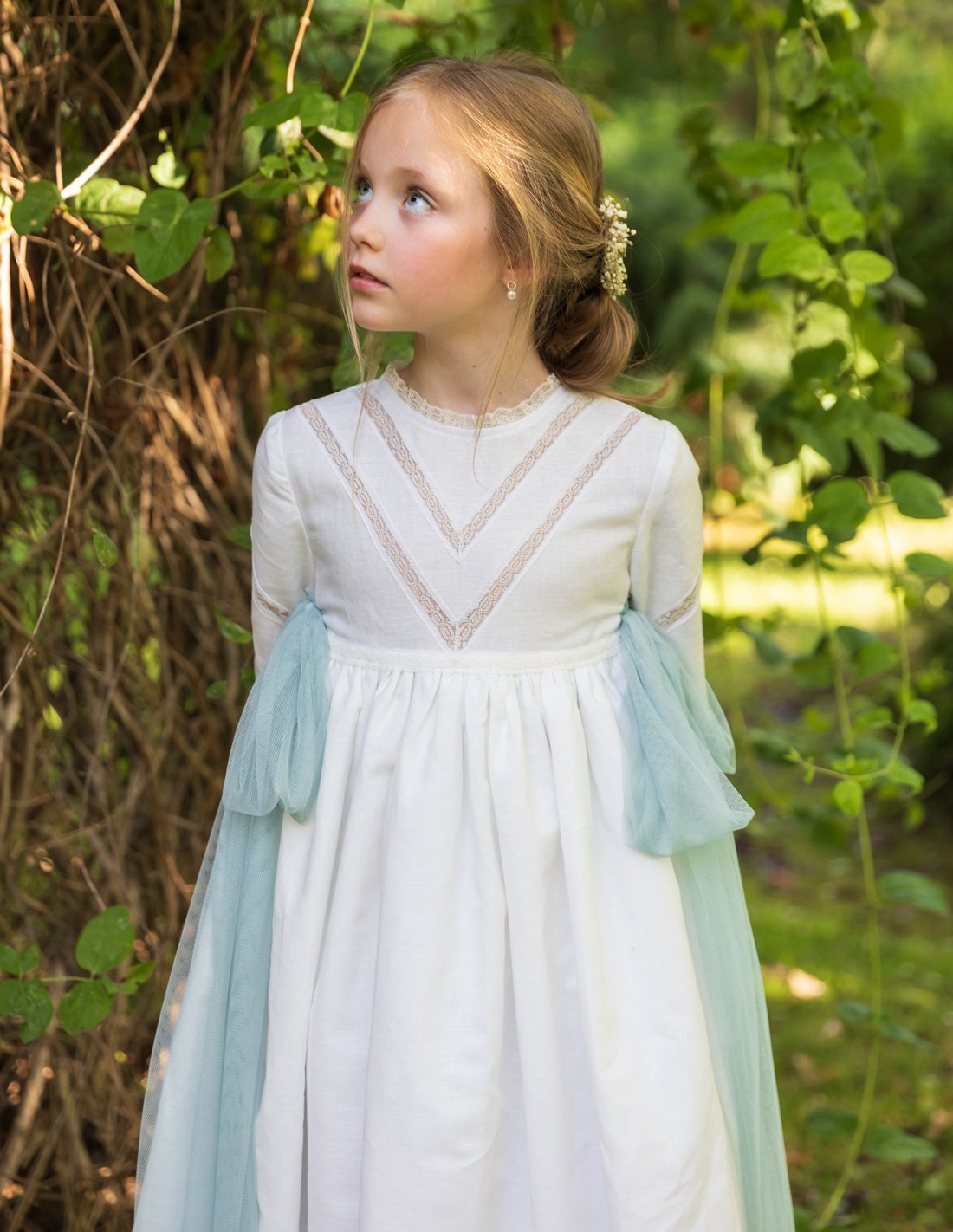 Vestido de Primera Comunión Génova, en lino blanco natural.
